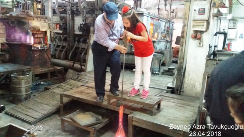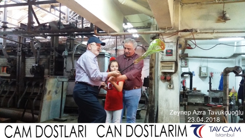 Yine oldukça renkli görüntülerin yaşandığı projede, Tavcam çalışanları birlikte yüksek sıcaklıktaki cama üfleyen Zeynep Azra Tavukçuoğlu da kendi vazosunu tasarlamış oldu.