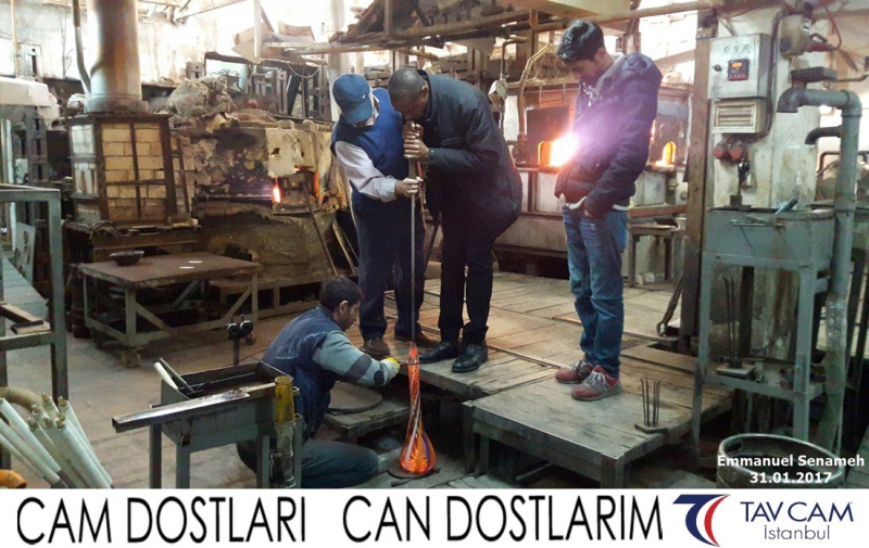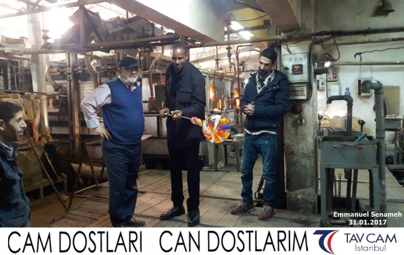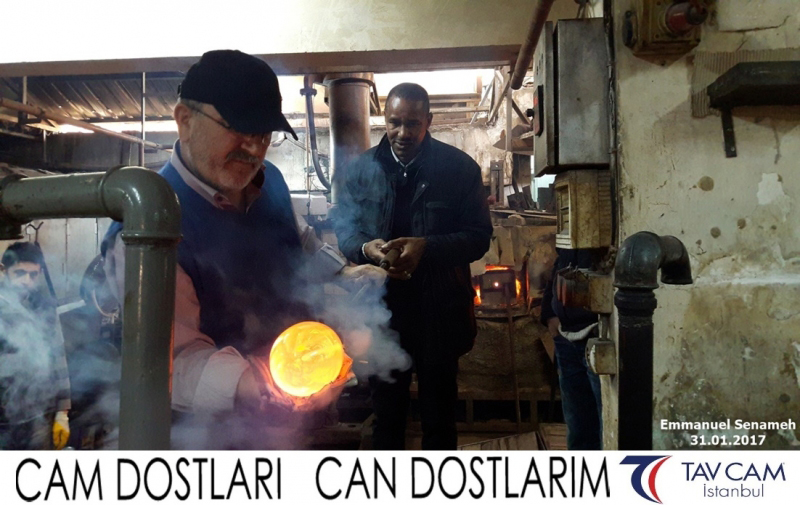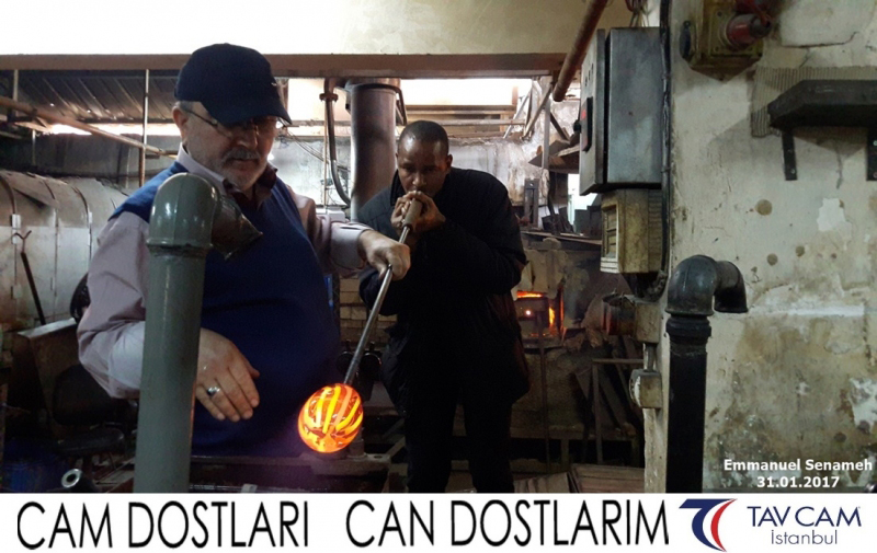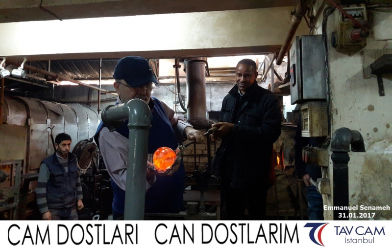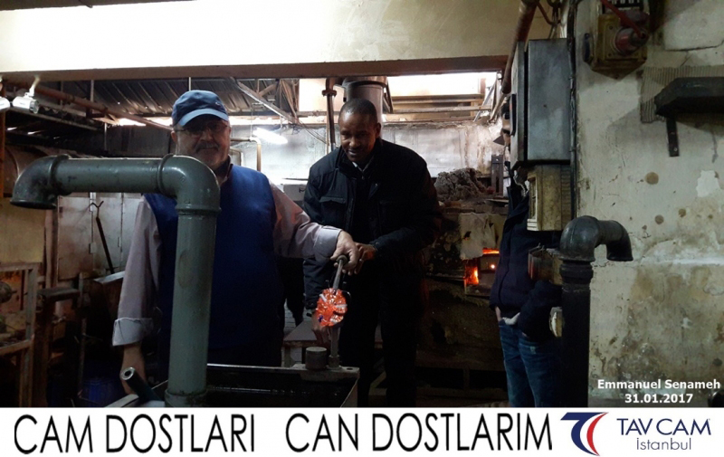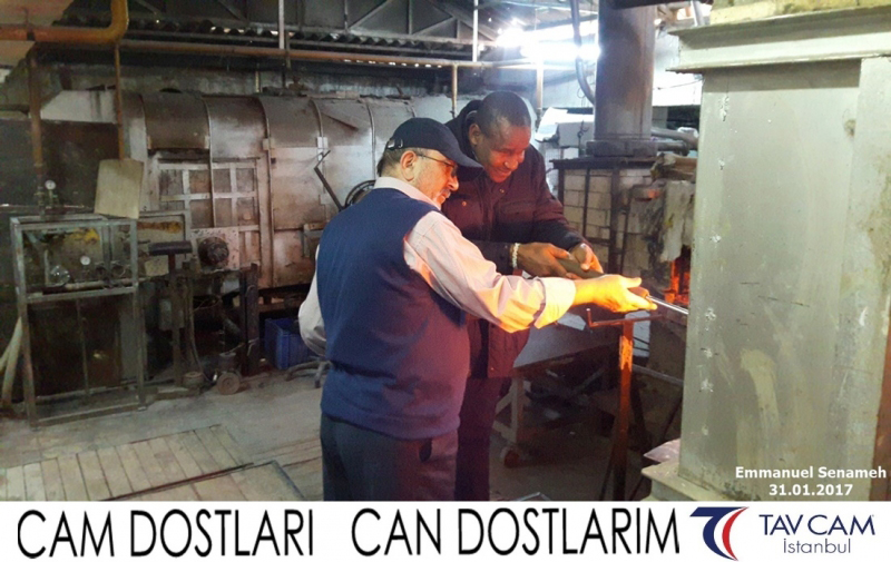 Yine oldukça renkli görüntülerin yaşandığı projede, Tavcam çalışanları birlikte yüksek sıcaklıktaki cama üfleyen Emmanuel Senameh da kendi vazosunu tasarlamış oldu.