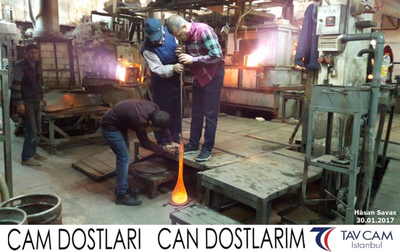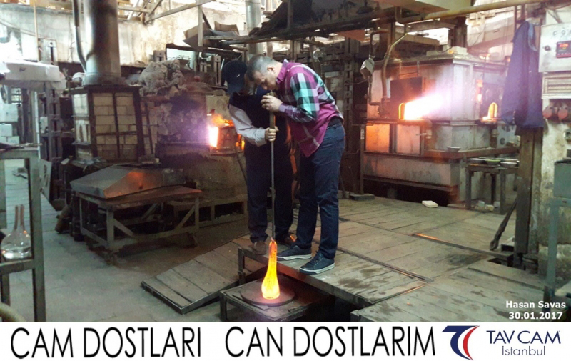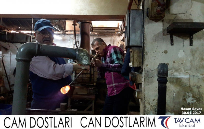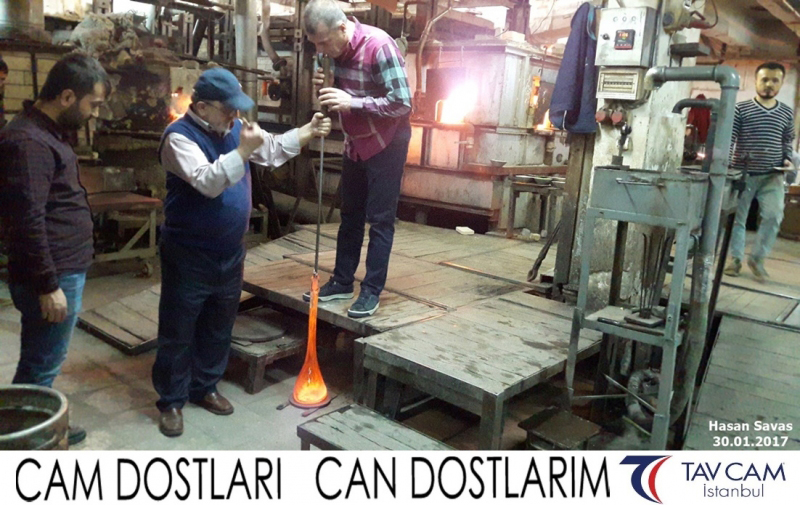Yine oldukça renkli görüntülerin yaşandığı projede, Tavcam çalışanları birlikte yüksek sıcaklıktaki cama üfleyen Hasan Savaş da kendi vazosunu tasarlamış oldu.
