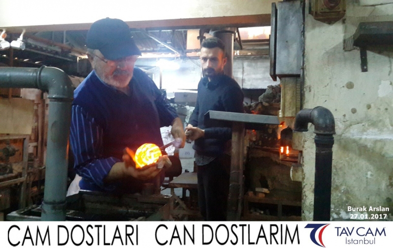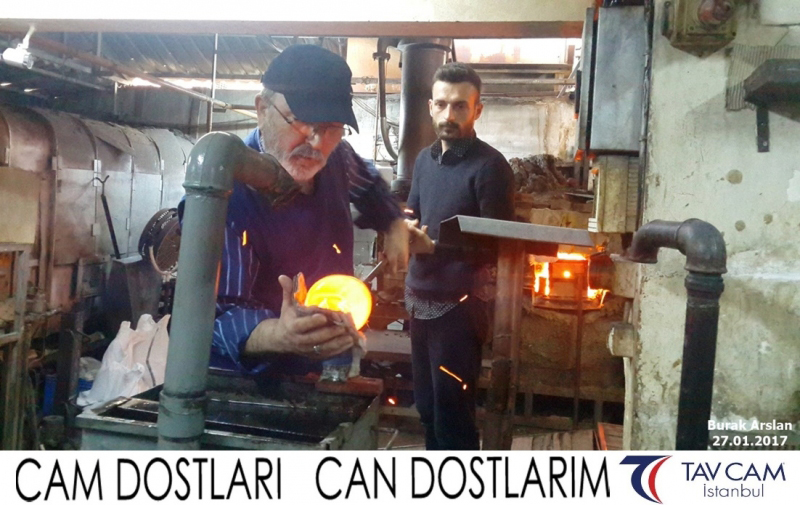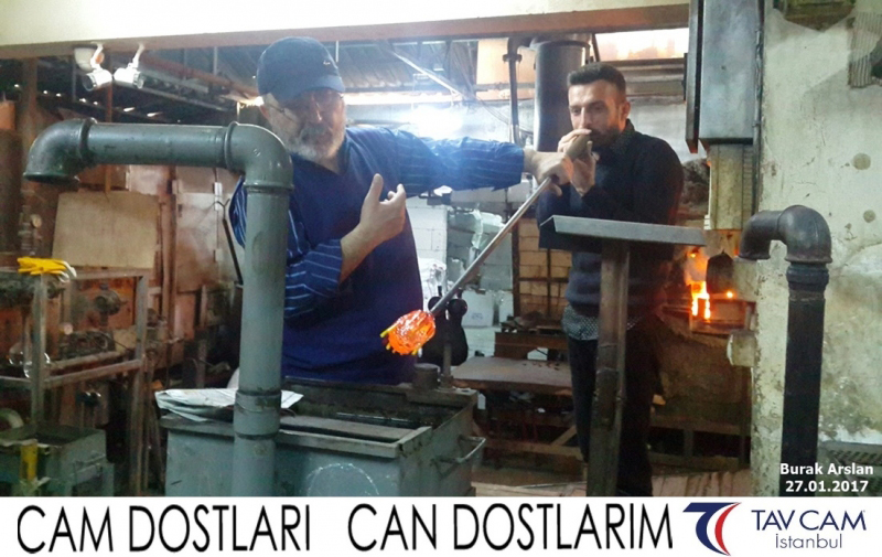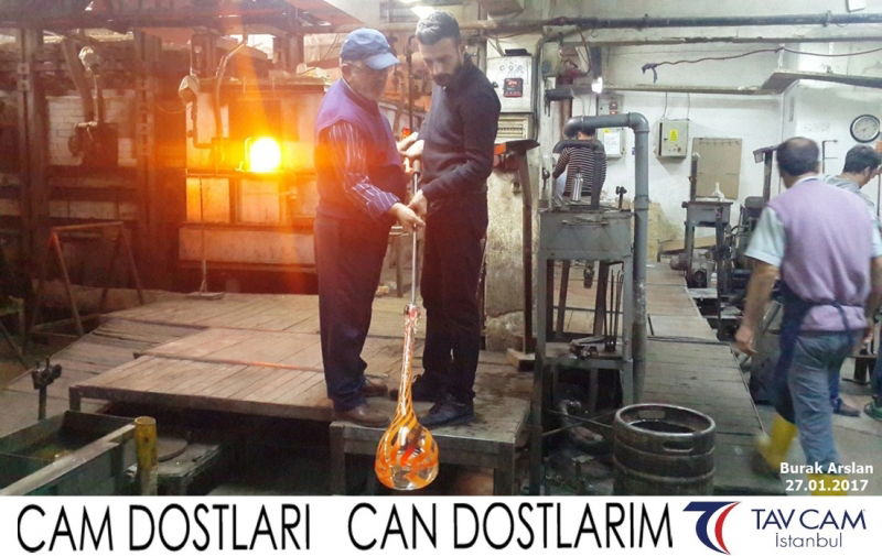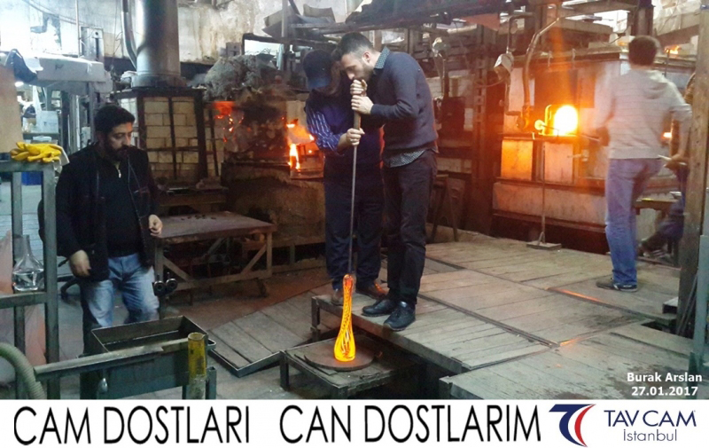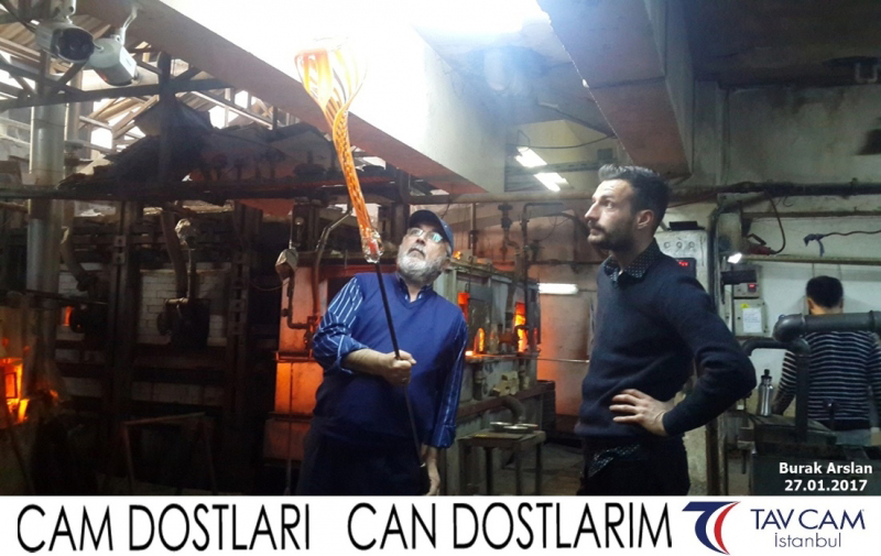 Yine oldukça renkli görüntülerin yaşandığı projede, Tavcam çalışanları birlikte yüksek sıcaklıktaki cama üfleyen Burak Arslan da kendi vazosunu tasarlamış oldu.