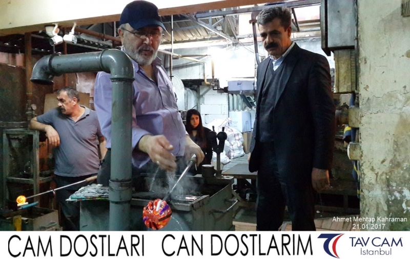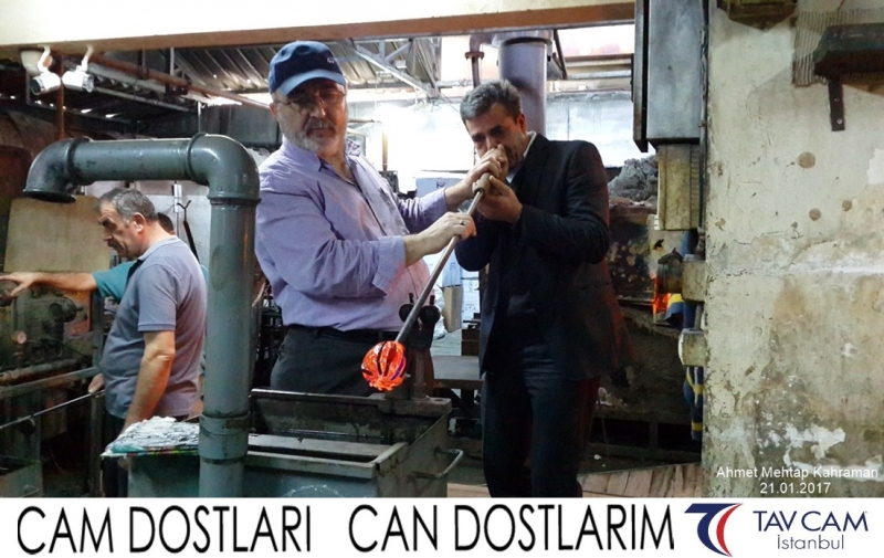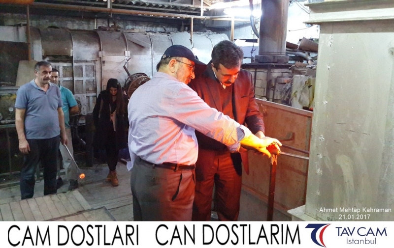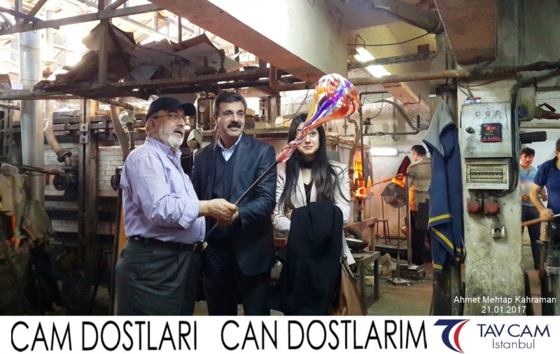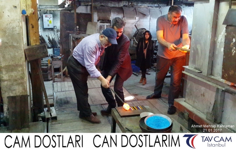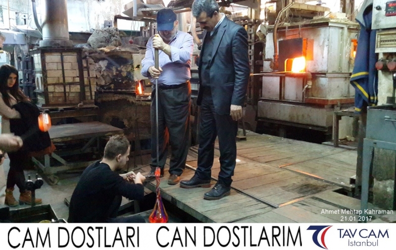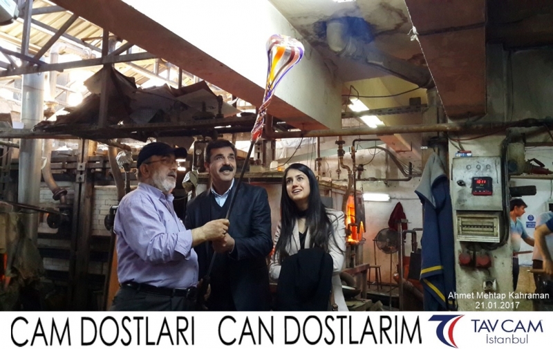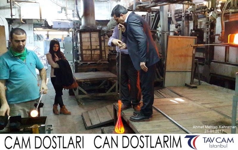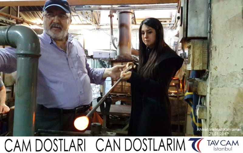 Yine oldukça renkli görüntülerin yaşandığı projede, Tavcam çalışanları birlikte yüksek sıcaklıktaki cama üfleyen Ahmet ve Mehtap Kahraman da kendi vazosunu tasarlamış oldu.