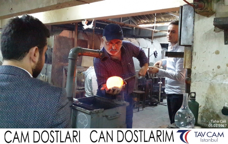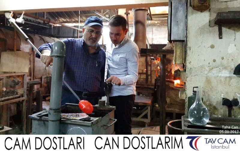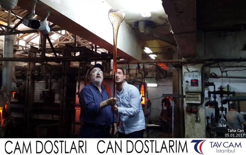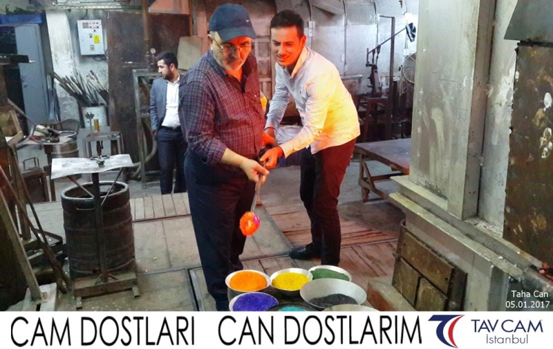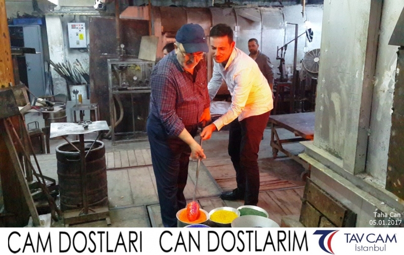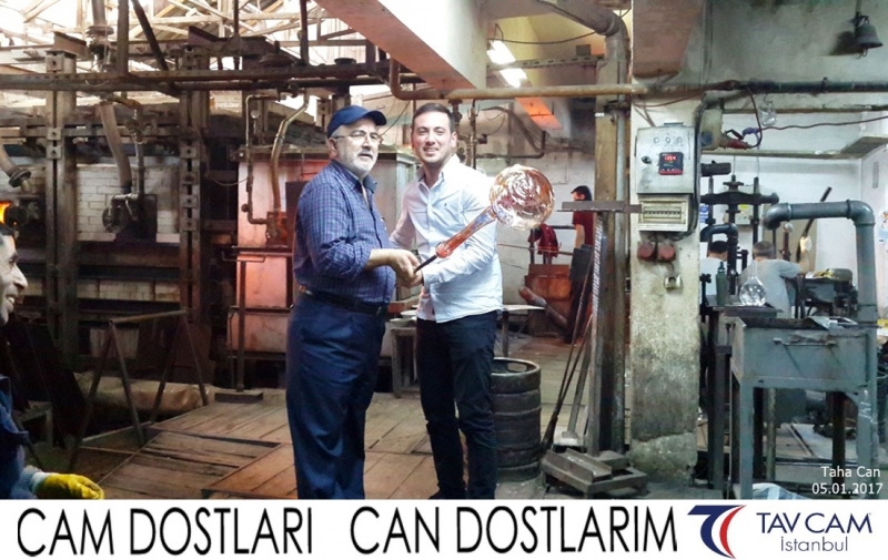 Yine oldukça renkli görüntülerin yaşandığı projede, Tavcam çalışanları birlikte yüksek sıcaklıktaki cama üfleyen Taha Can da kendi vazosunu tasarlamış oldu.