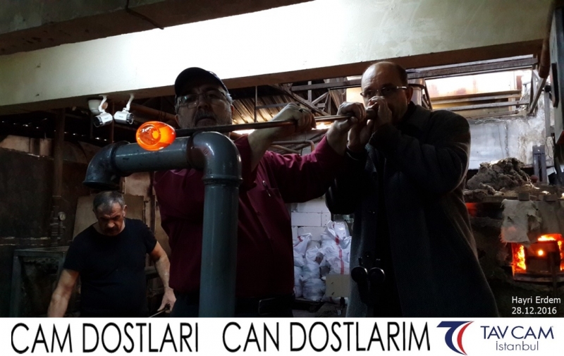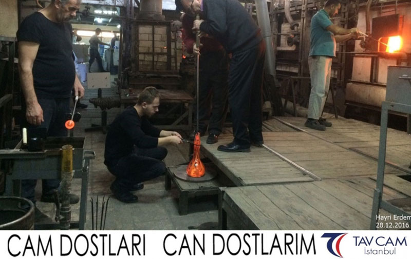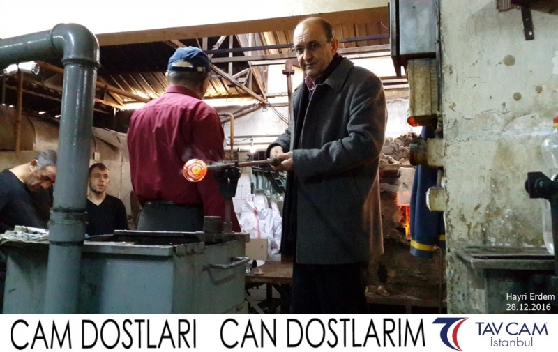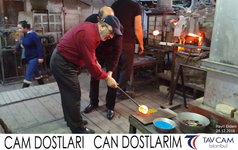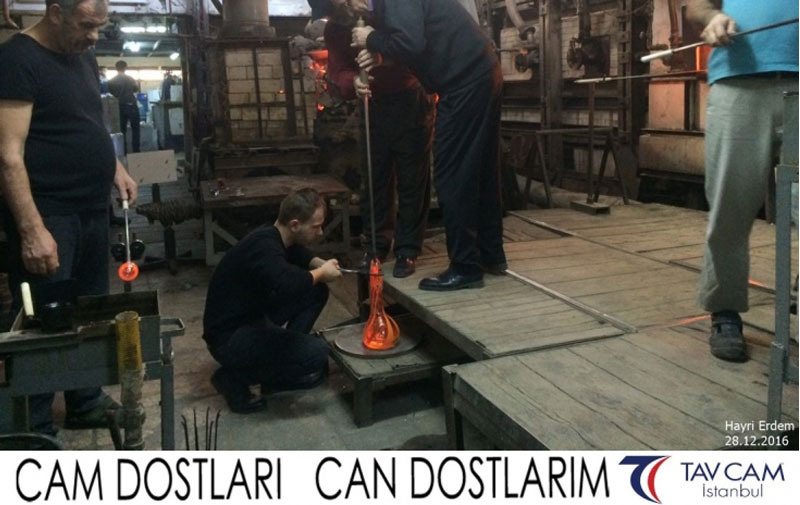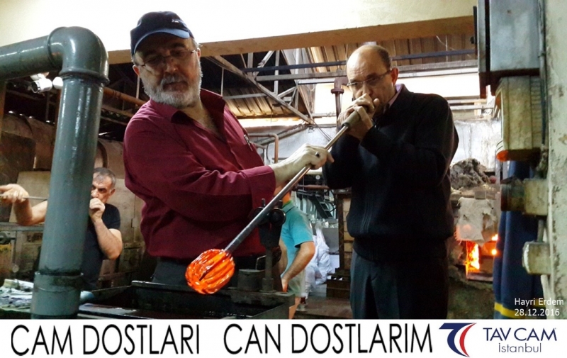Yine oldukça renkli görüntülerin yaşandığı projede, Tavcam çalışanları birlikte yüksek sıcaklıktaki cama üfleyen Hayri Erdem de kendi vazosunu tasarlamış oldu.