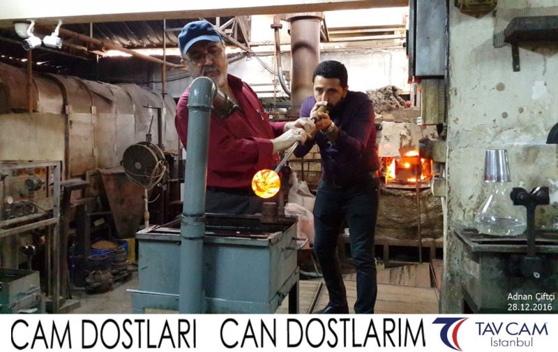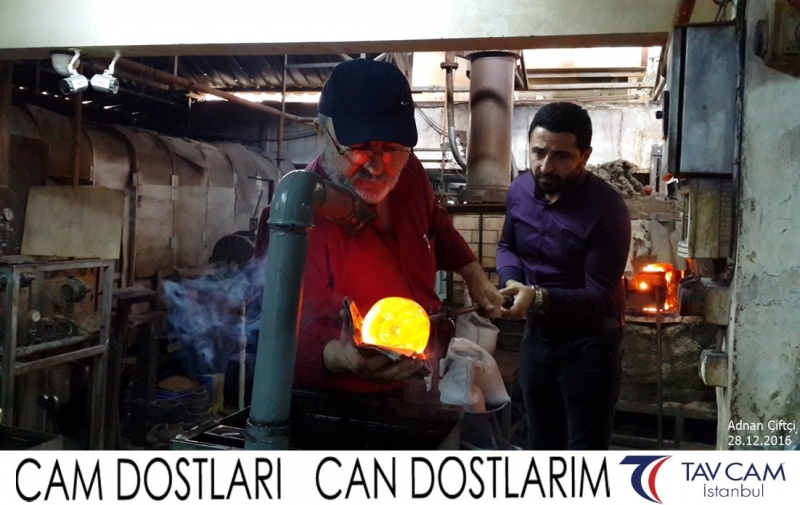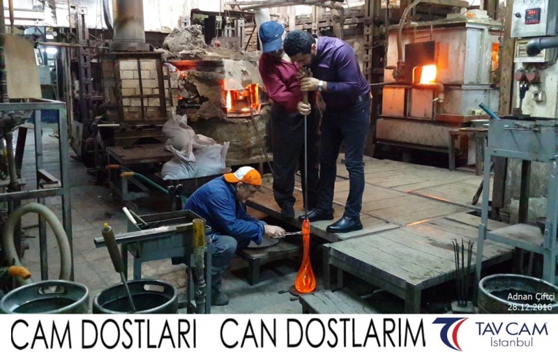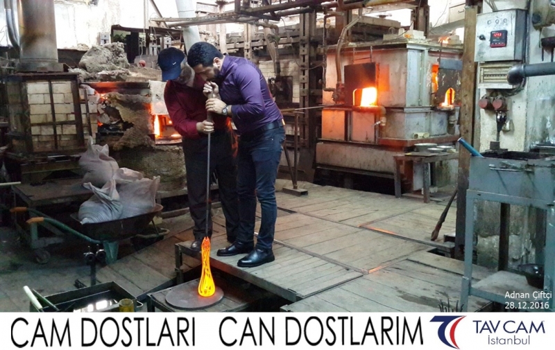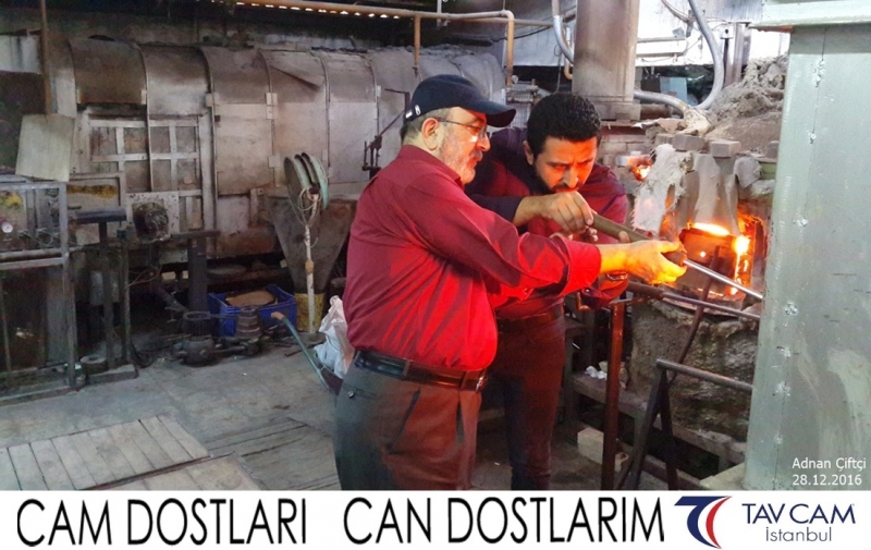 Yine oldukça renkli görüntülerin yaşandığı projede, Tavcam çalışanları birlikte yüksek sıcaklıktaki cama üfleyen Adnan Çiftçi de kendi vazosunu tasarlamış oldu.