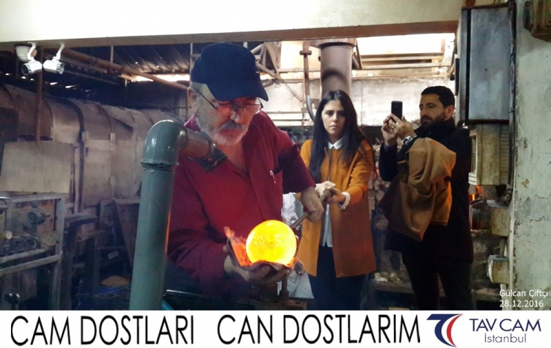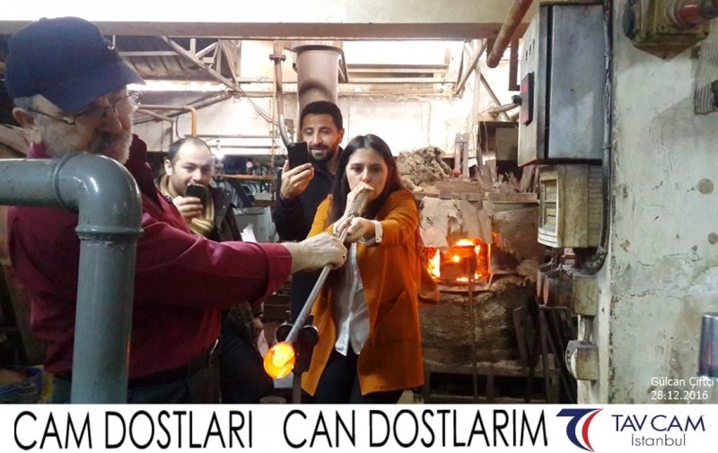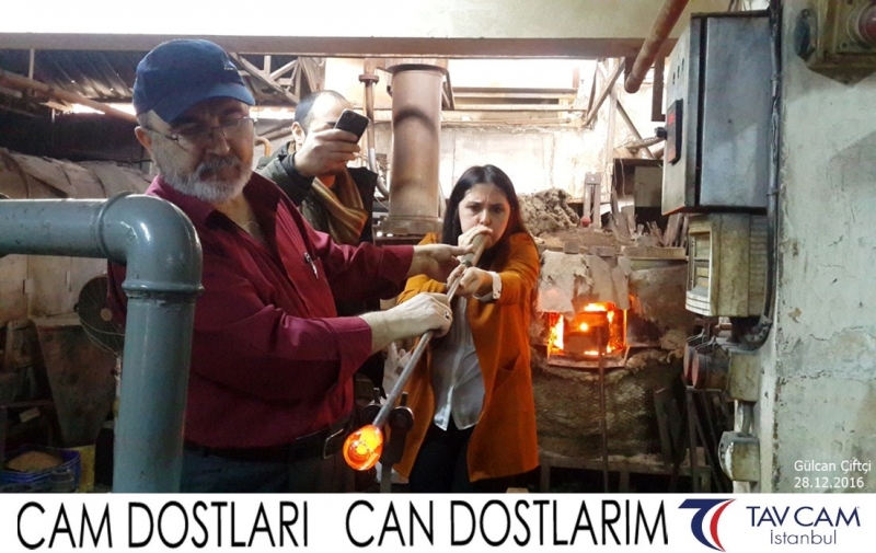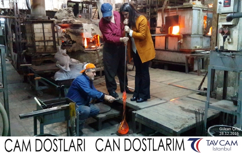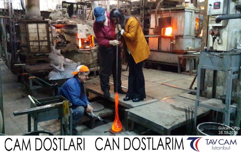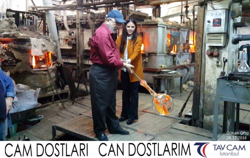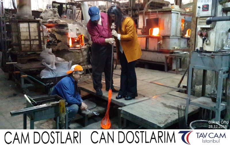 Yine oldukça renkli görüntülerin yaşandığı projede, Tavcam çalışanları birlikte yüksek sıcaklıktaki cama üfleyen Gülcan Çiftçi de kendi vazosunu tasarlamış oldu.