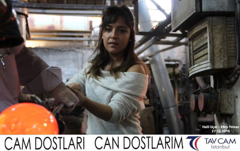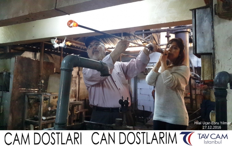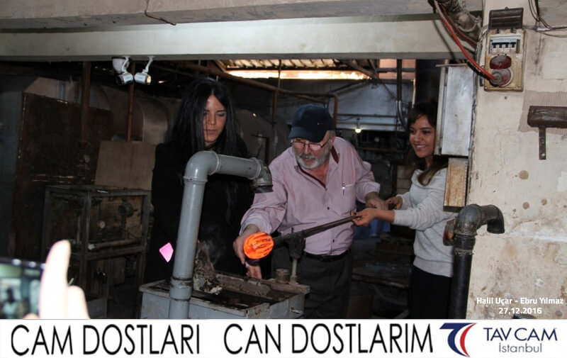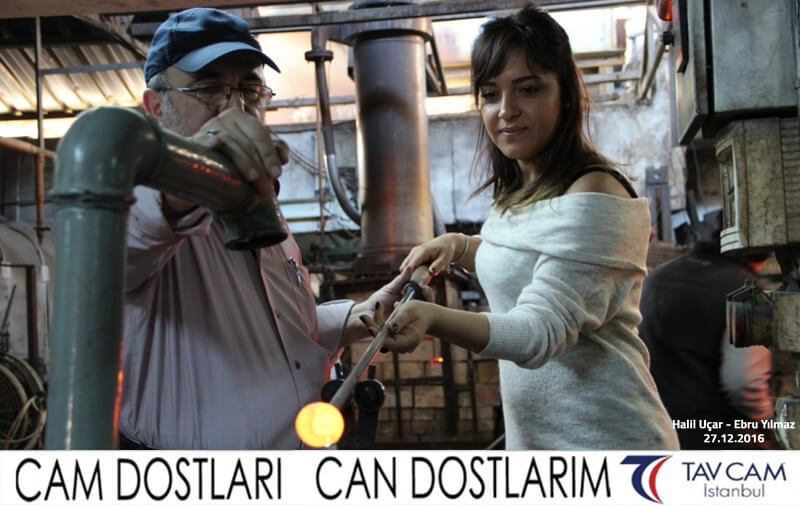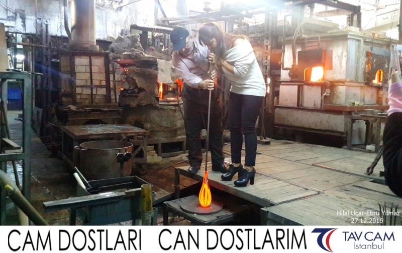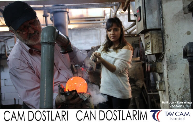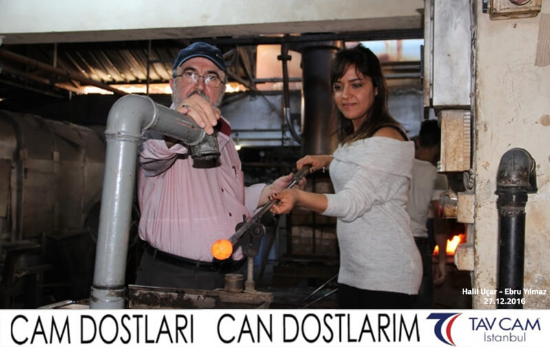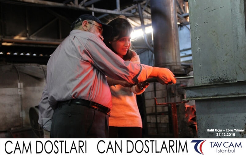 Yine oldukça renkli görüntülerin yaşandığı projede, Tavcam çalışanları birlikte yüksek sıcaklıktaki cama üfleyen Hilal Uçar-Ebru Yılmaz de kendi vazosunu tasarlamış oldu.