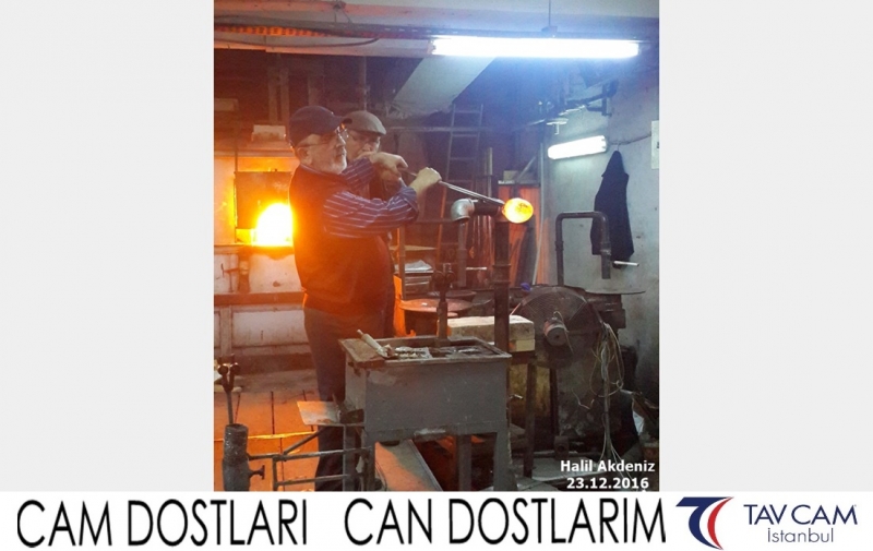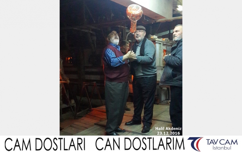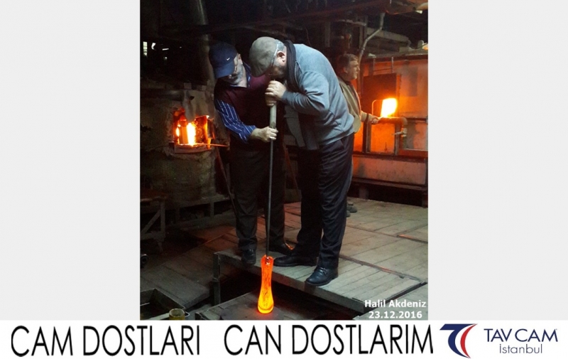 Yine oldukça renkli görüntülerin yaşandığı projede, Tavcam çalışanları birlikte yüksek sıcaklıktaki cama üfleyen Halil Akdeniz de kendi vazosunu tasarlamış oldu.