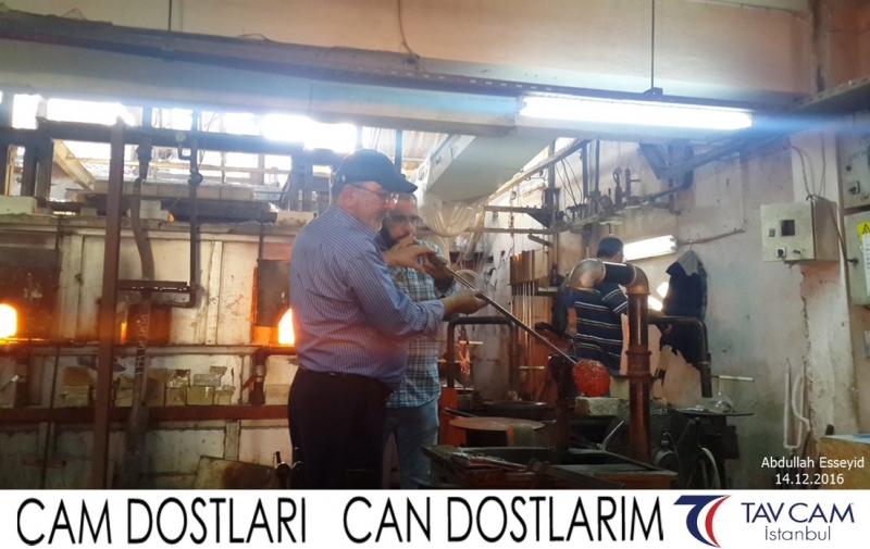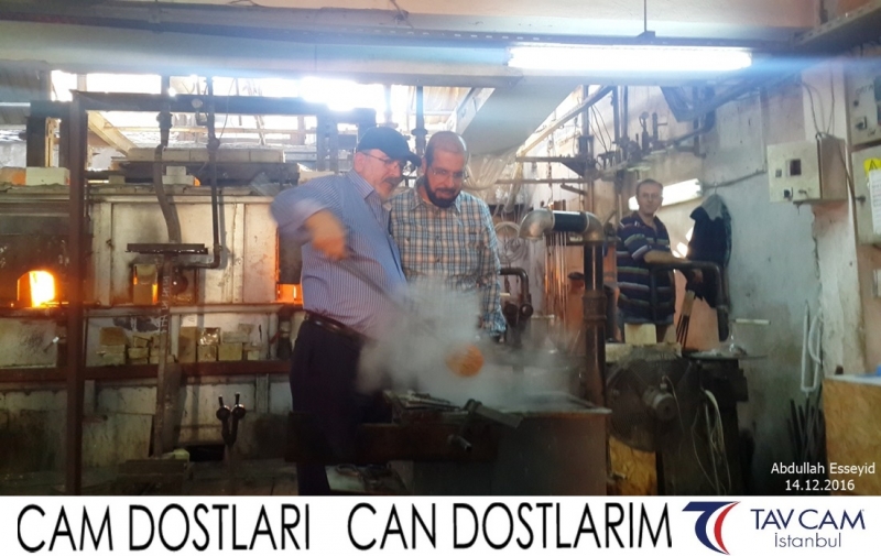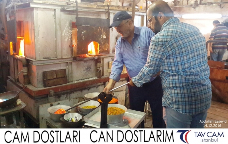Yine oldukça renkli görüntülerin yaşandığı projede, Tavcam çalışanları birlikte yüksek sıcaklıktaki cama üfleyen Abdullah Esseyid de kendi vazosunu tasarlamış oldu.