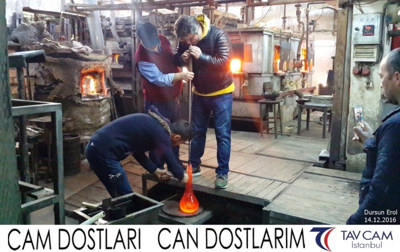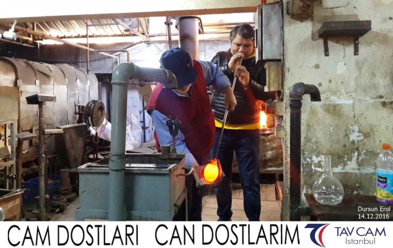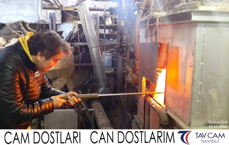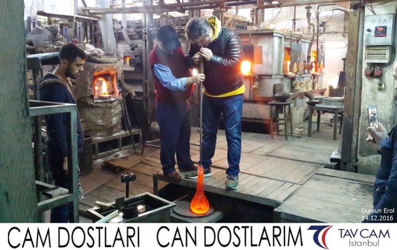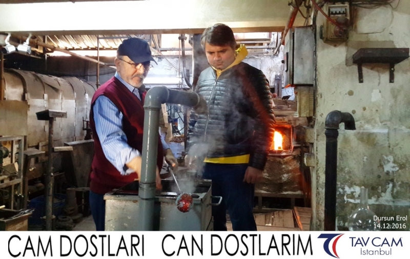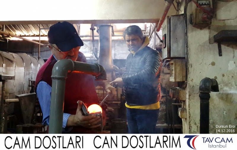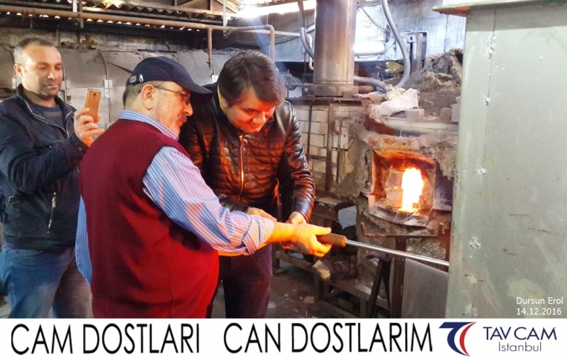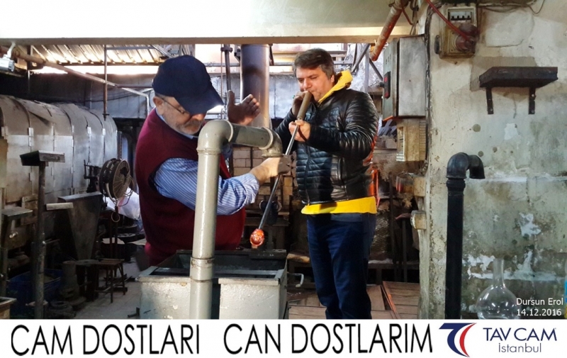 Yine oldukça renkli görüntülerin yaşandığı projede, Tavcam çalışanları birlikte yüksek sıcaklıktaki cama üfleyen Dursun Erol da kendi vazosunu tasarlamış oldu.