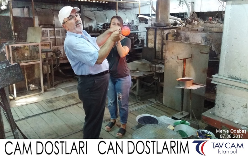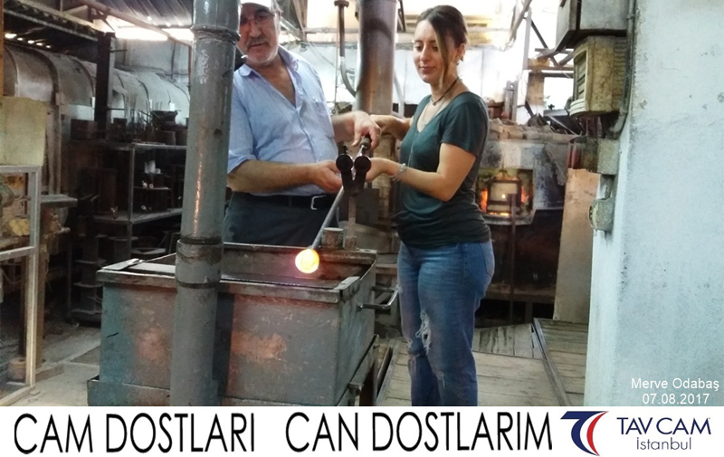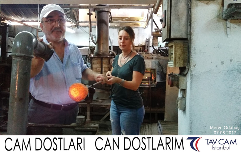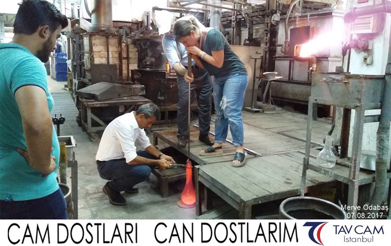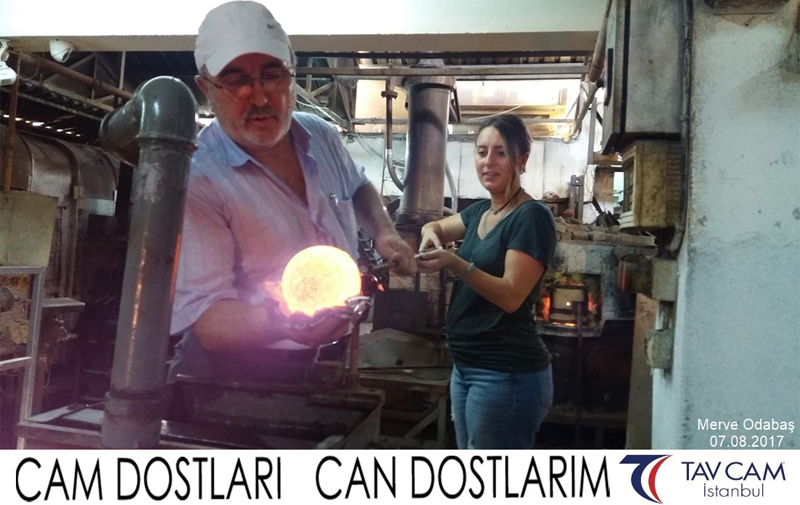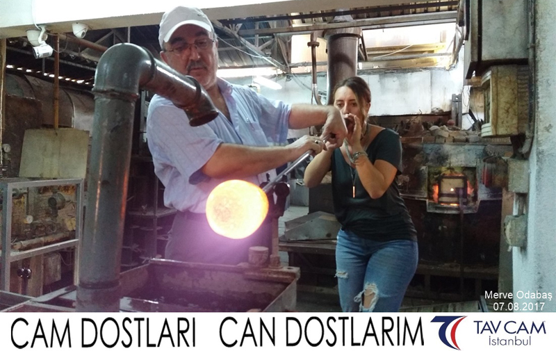 Yine oldukça renkli görüntülerin yaşandığı projede, Tavcam çalışanları birlikte yüksek sıcaklıktaki cama üfleyen Merve Odabaş’da kendi vazosunu tasarlamış oldu.